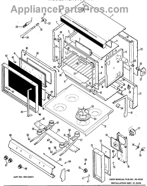 Parts for Ge RGH646G1F0: 01 - Section1 Parts
