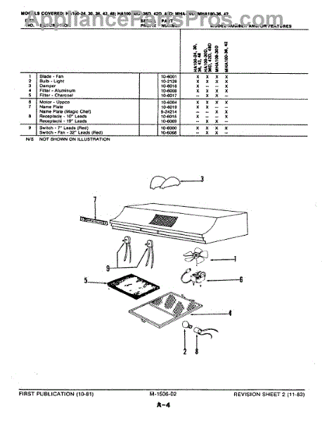 Parts for Magic Chef HA100A-30D: 01 - Hood Parts
