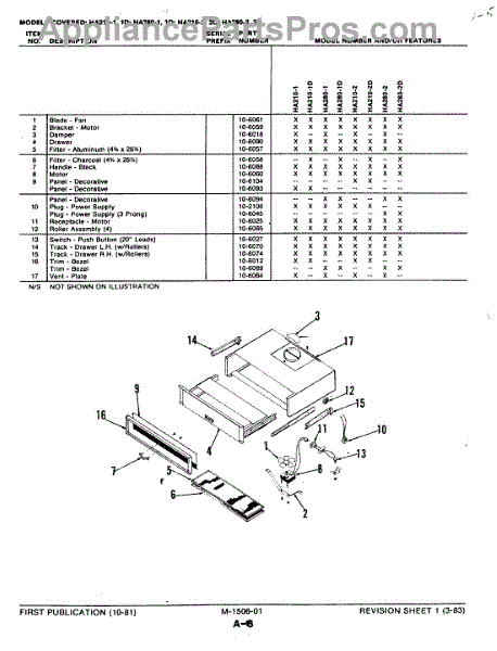 Parts for Magic Chef HA280-1: 01 - Hood Parts