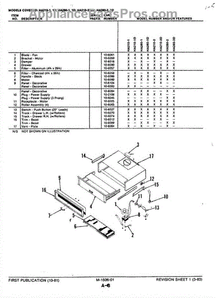Parts for Magic Chef HA280-1D: 01 - Hood Parts