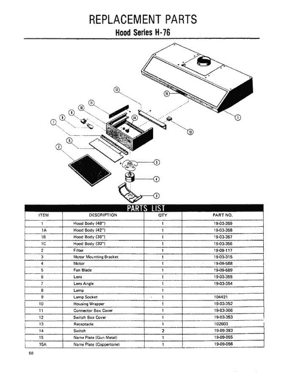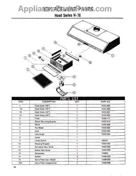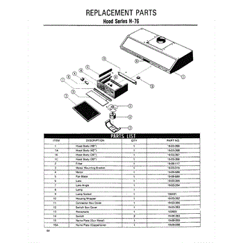 Parts for Thermador H-76: 01 - Hood Parts