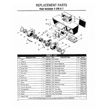Parts for Thermador V-206: 01 - Hood Ventilator Parts