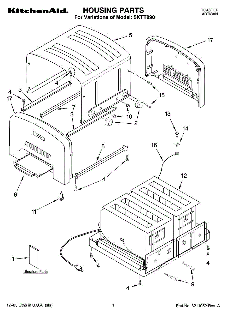 Parts for Whirlpool 5KTT890: 01 - Housing Parts