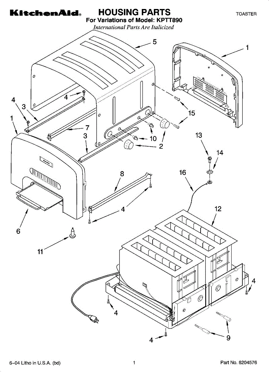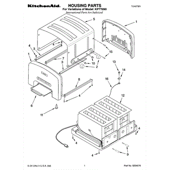 Parts for Kitchenaid KPTT890: 01 - Housing Parts