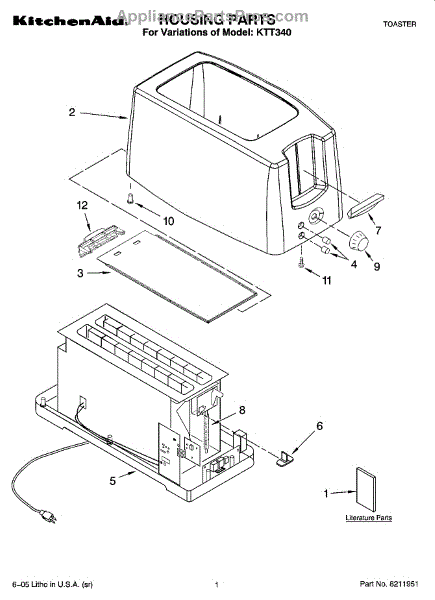 Parts for Kitchenaid KTT340: 01 - Housing Parts