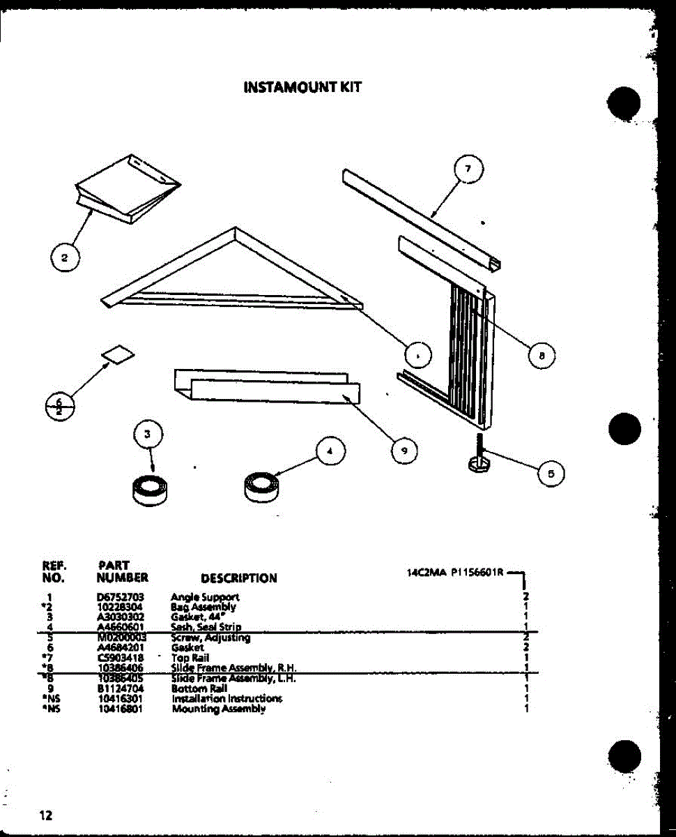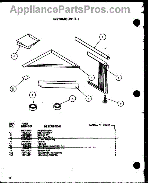 Parts for Amana 14C2MA / P1156601R: 01 - Instamount Kit Parts