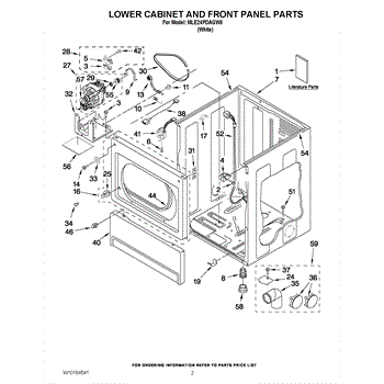 The Belt is an OEM replacement part for Whirlpool clothes dryers. This belt transfers power from the motor to the drum, causing it to spin and gently tumble dry clothes. Causes of belt failure typically relate to normal wear and tear over thousands of dryer cycles. As belts constantly rotate under tension, cracks and looseness can develop which affects their ability to grip smoothly. Physical damage from improper installation is another potential cause. Symptoms of a worn or broken belt include: