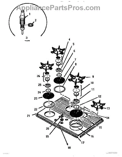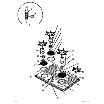 Parts for Thermador GG3001: 01 - Main Top Parts