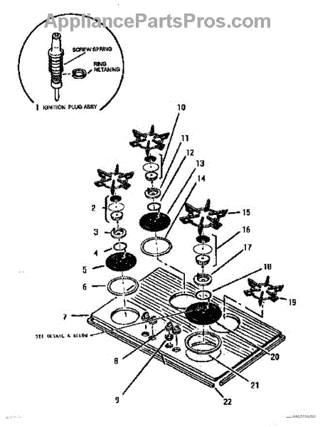 Parts for Thermador GG3602: 01 - Main Top Parts