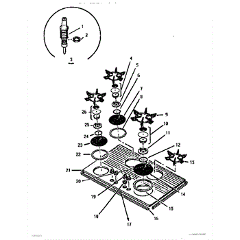 Parts for Thermador GGCV3601: 01 - Main Top Parts