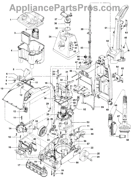 Parts for Hoover F5857918: 01 - Mainhousing, Motor, Hose, Handle Parts
