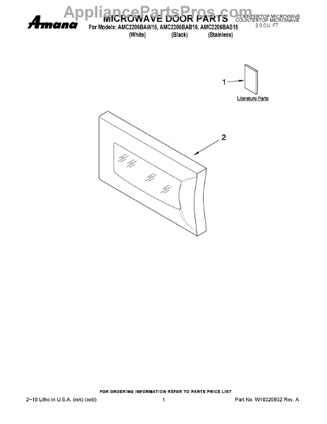 Parts for Maytag AMC2206BAB15: 01 - Microwave Door Parts