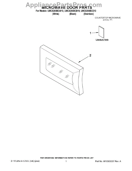 Parts for Whirlpool UMC5200BCS10: 01 - Microwave Door Parts