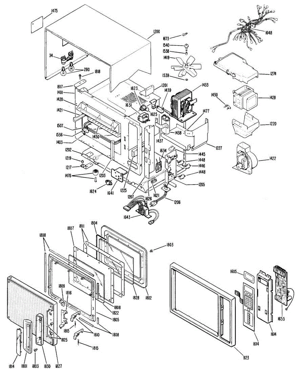 • Unplug the microwave and properly discharge the high-voltage capacitor before servicing—dangerous voltage can remain even when unplugged