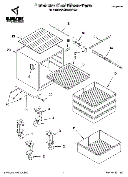 Parts for Whirlpool GAGD275DRG00: 01 - Modular Gear Drawer Parts