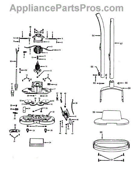 Parts for Hoover F2003001: 01 - Motor, Handle, Hood, Switch, Gears Parts