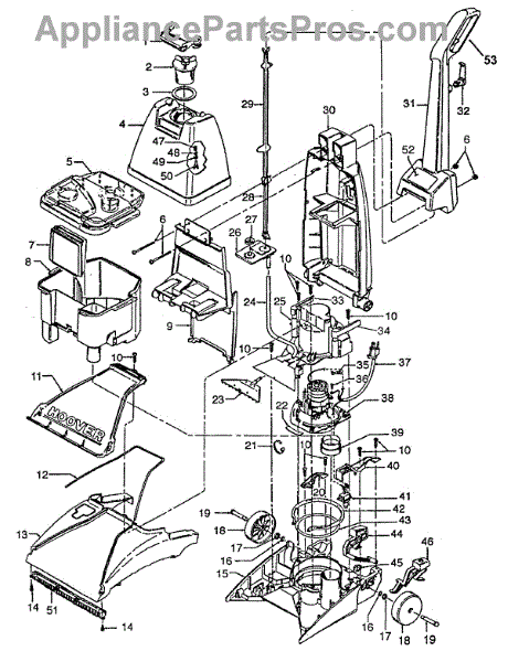 Parts for Hoover F5806---: 01 - Motor, Handle, Tank, Hood, Switch Parts
