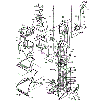 Parts for Hoover F5808---: 01 - Motor, Handle, Tank, Hood, Switch Parts