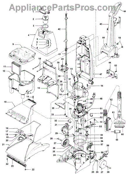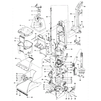 Parts for Hoover F5831900: 01 - Motor, Handle, Tank, Hood, Switch Parts