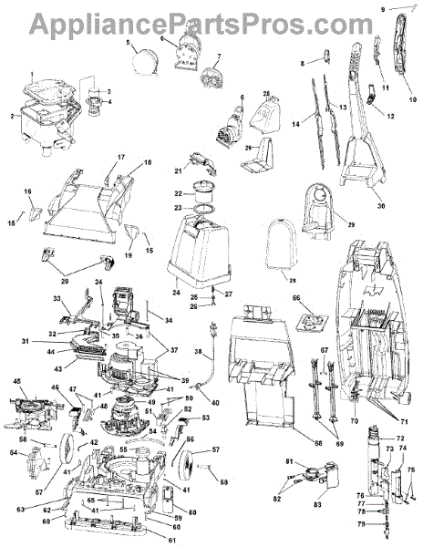 Parts for Hoover F6026910: 01 - Motor, Hose, Cleaningtools, Handle, Tank Parts