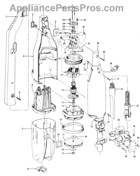 Parts for Hoover S2543---: 01 - Motor, Hose, Motorhousing Parts
