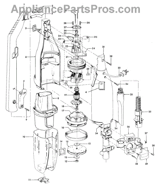 Parts for Hoover S2610---: 01 - Motor, Hose, Baghousing Parts