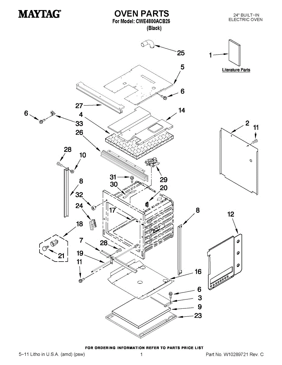 Parts for Maytag CWE4800ACB25: 01 - Oven Parts