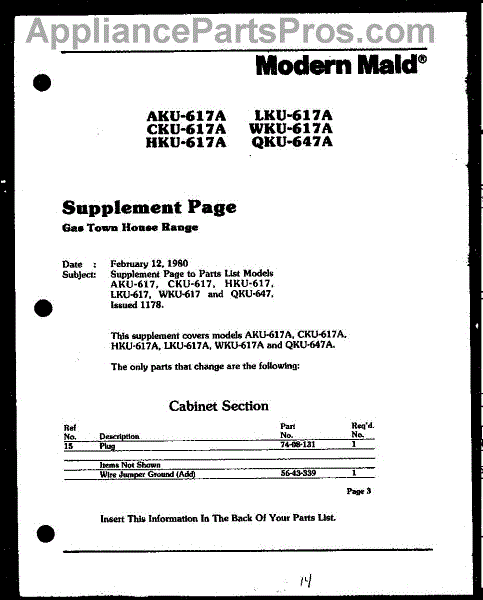 Parts for Amana CKU-617: 01 - Page 1 Parts