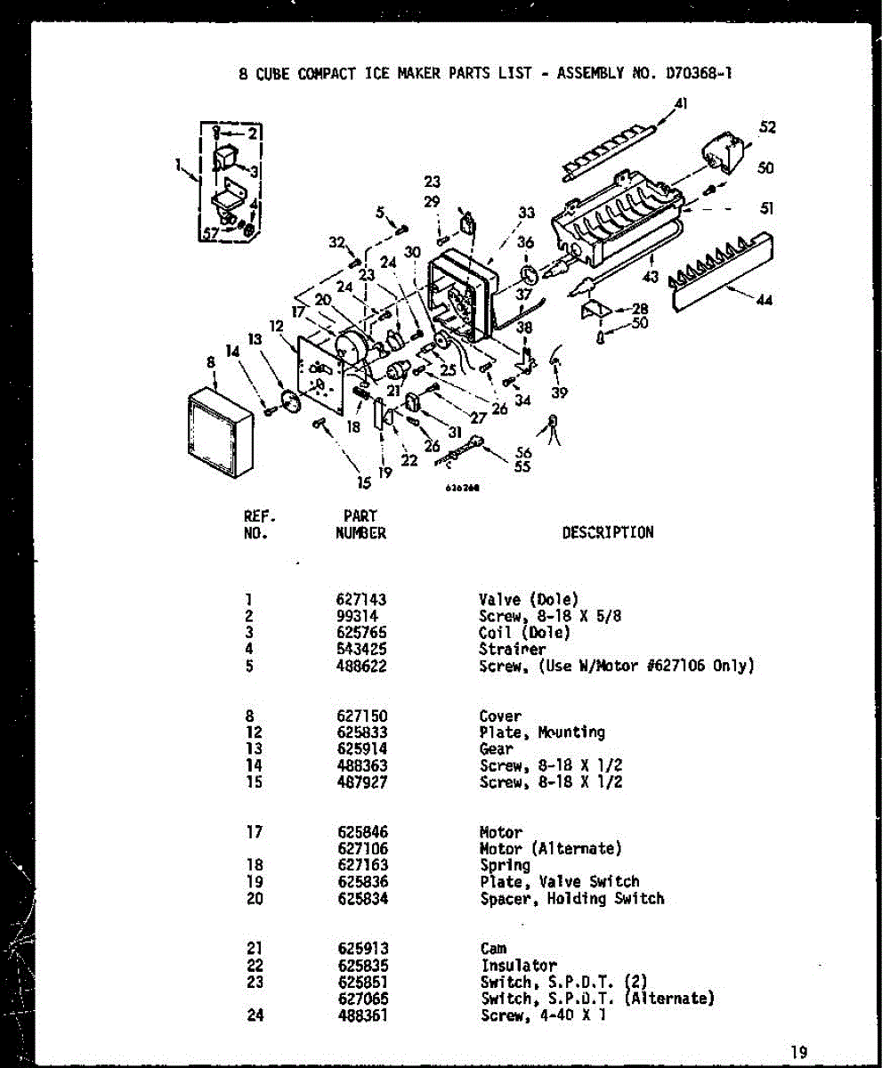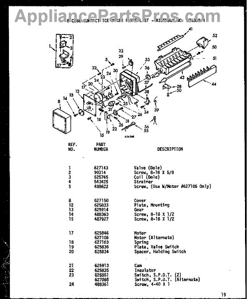 • Works with the ice maker's motor/gear assembly to advance cubes into the bin.