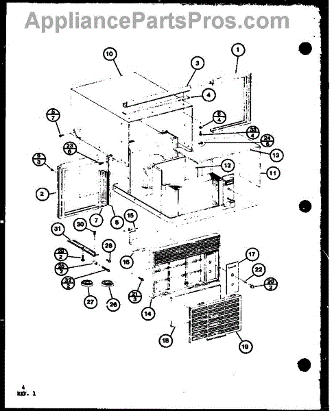This factory screw secures appliance components to their mounting points. Replace missing, worn, or stripped hardware to restore a tight fit, proper alignment, and quieter operation across the affected assembly.