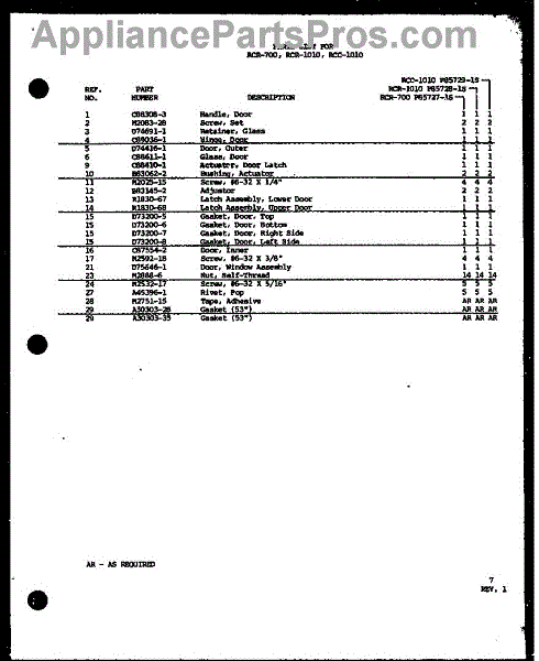 Parts for Amana RCR-1010 / P8572801S: 01 - Page 1 Parts
