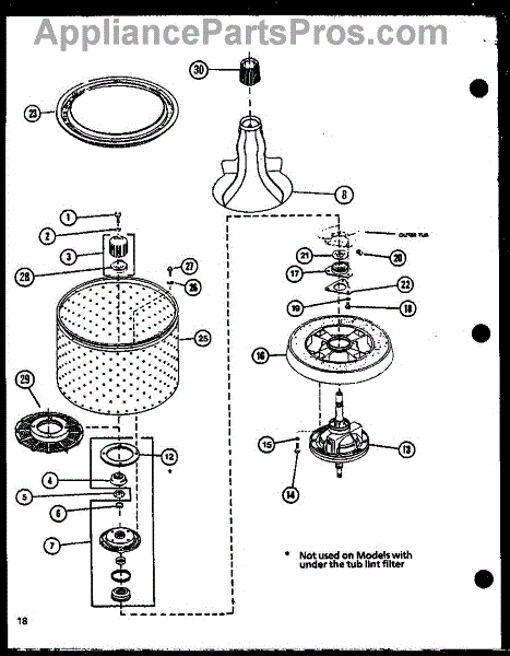 This replacement main bearing assembly supports the washer's drive/spin system. It keeps the inner basket and drive shaft rotating smoothly and quietly, helping maintain alignment and reducing vibration during wash and high-speed spin.