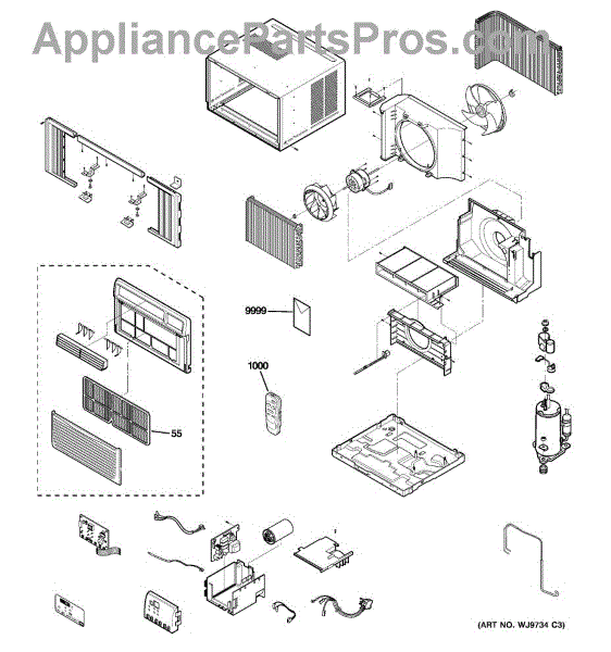 Parts for Ge AGH10AJG1: 01 - Room Air Conditioner Parts