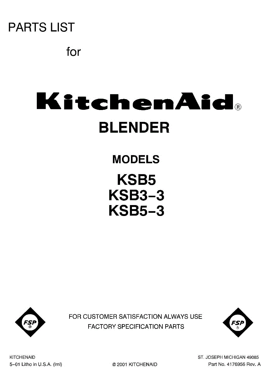 Parts for Kitchenaid KSB53: 01 - Section Parts