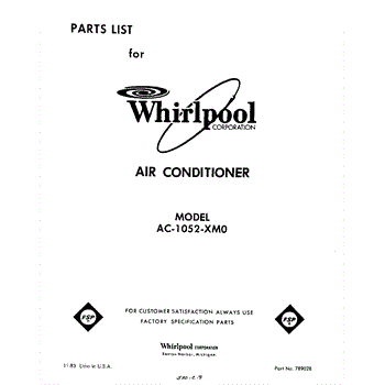 Parts for Whirlpool AC1052XM0: 01 - Section Parts