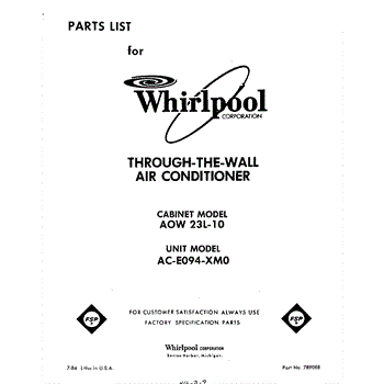 Whirlpool Air Conditioner Parts