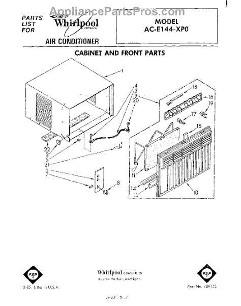 Parts for Whirlpool ACE144XP0: 01 - Section Parts