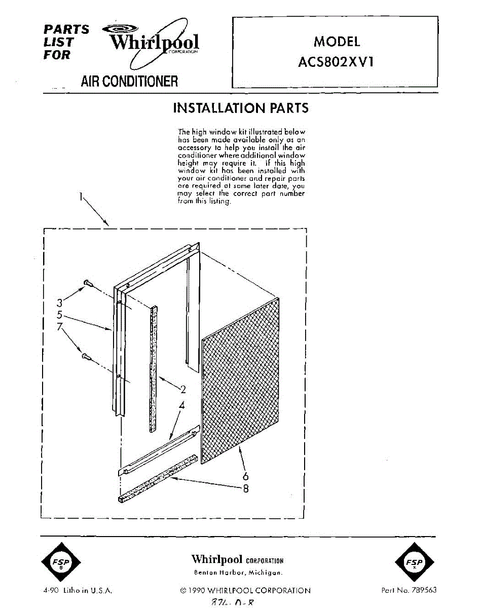 Parts for Whirlpool ACS802XV1: 01 - Section Parts