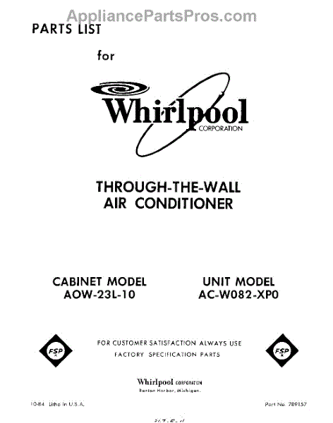 Parts for Whirlpool ACW082XP0: 01 - Section Parts