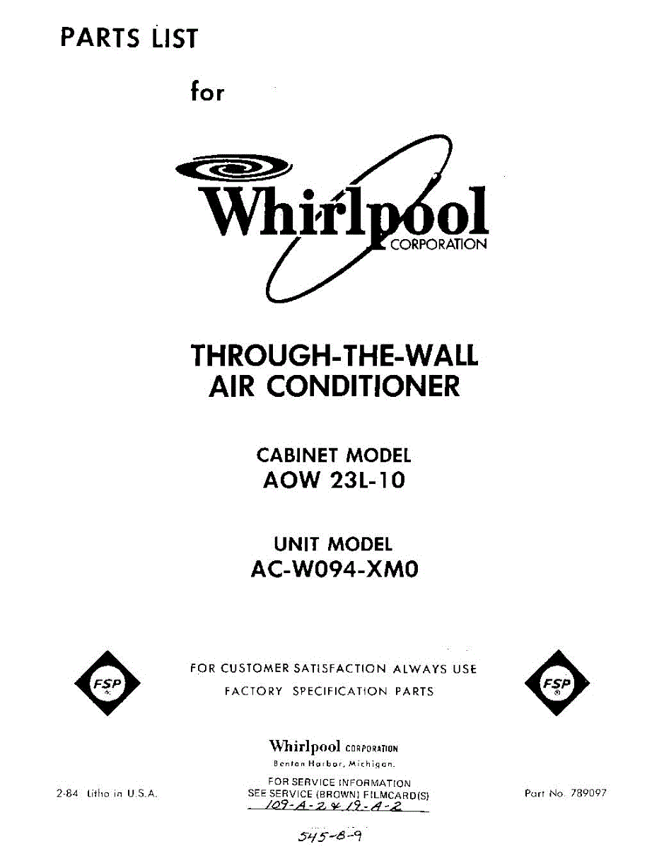 Whirlpool Air Conditioner Parts