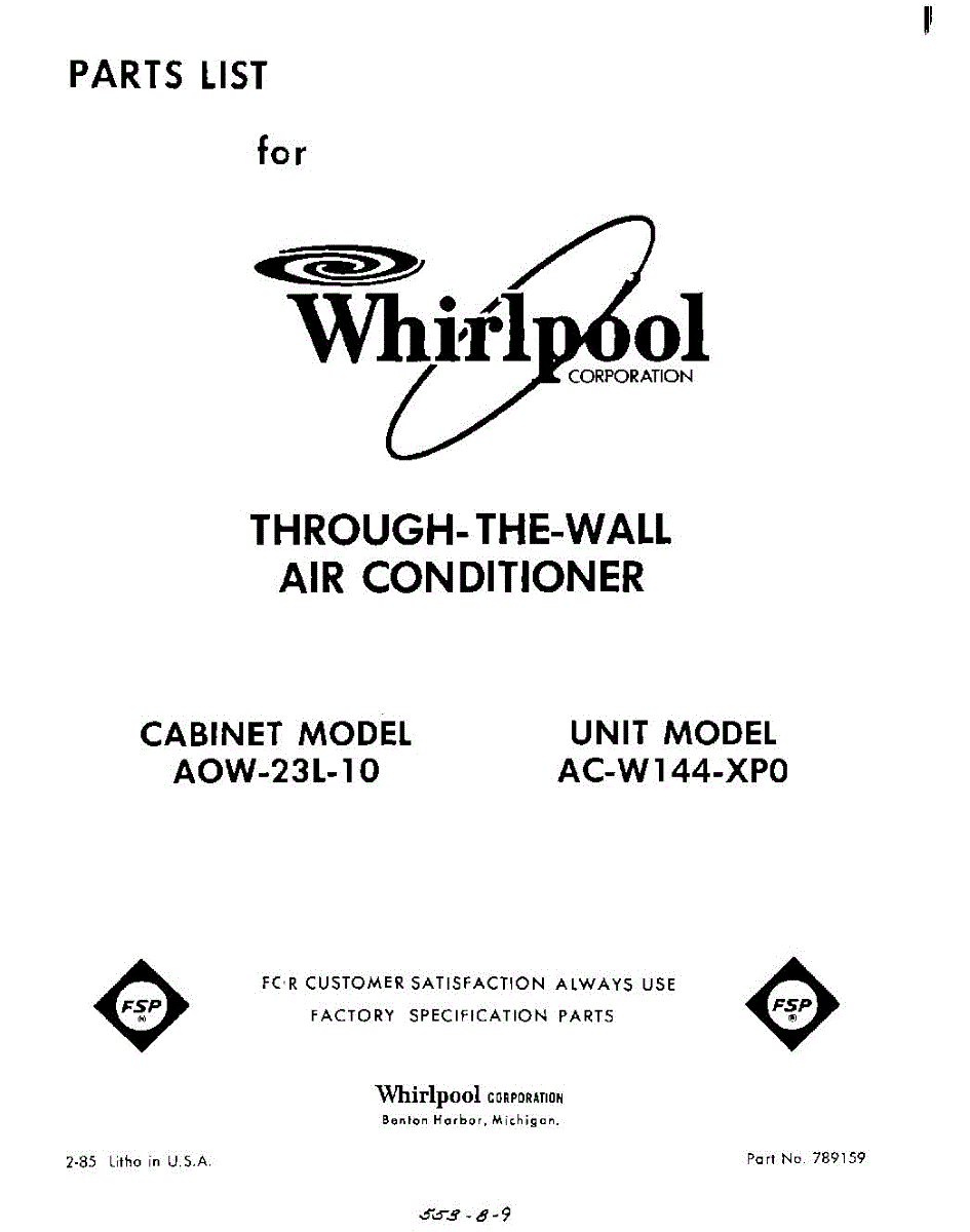 Whirlpool Air Conditioner Parts