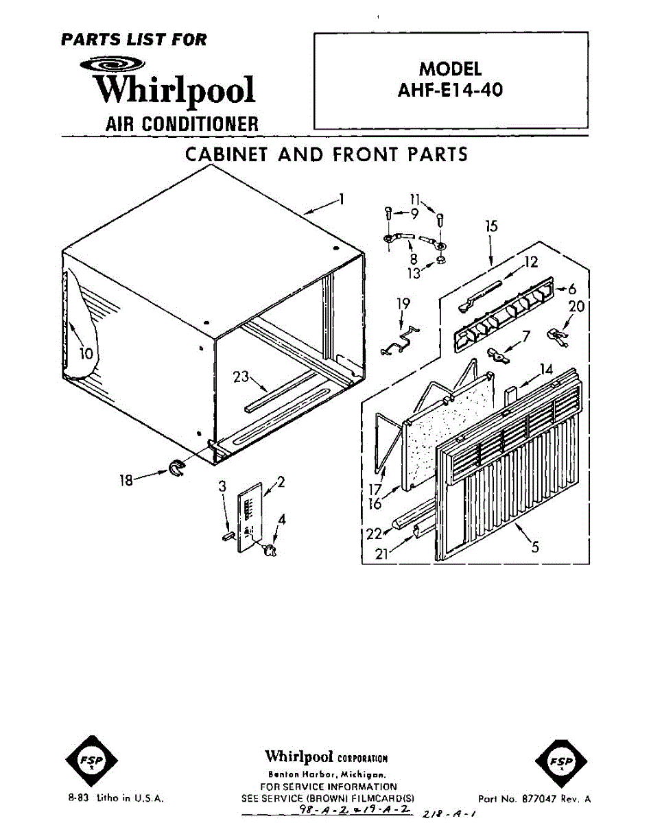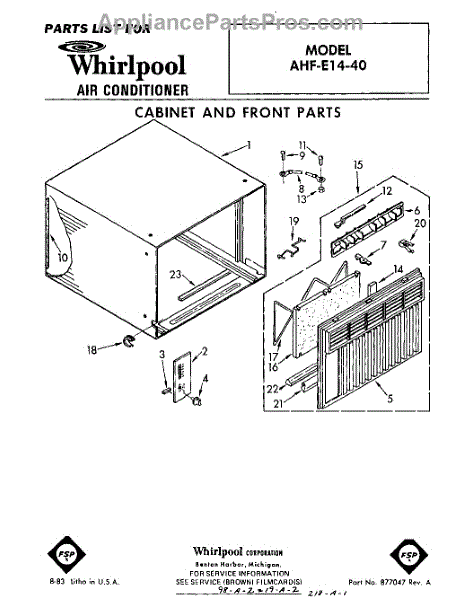 Parts for Whirlpool AHFE1440: 01 - Section Parts