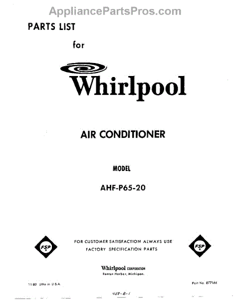 Parts for Whirlpool AHFP6520: 01 - Section Parts