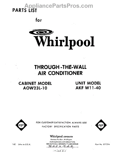Parts for Whirlpool AKFW1140: 01 - Section Parts