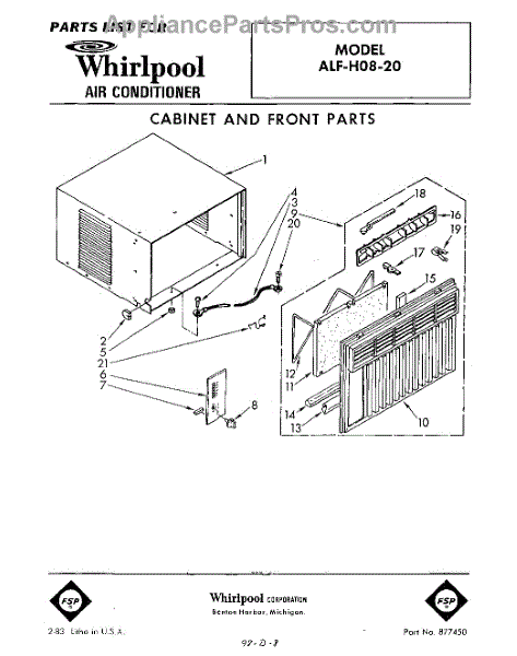 Parts for Whirlpool ALFH0820: 01 - Section Parts