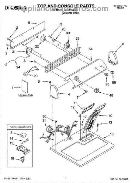 The Dryer Repair Kit is an OEM replacement part for Whirlpool 29-inch large capacity dryer models. It is a kit designed to provide various essential components and hardware needed for common dryer repairs or maintenance tasks.