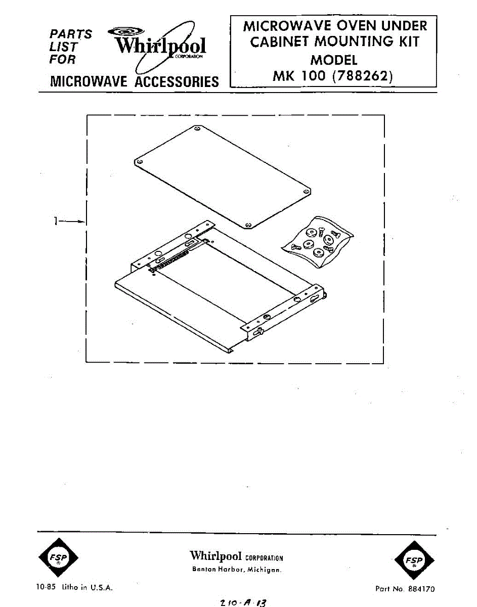 Parts for Whirlpool MK100: 01 - Section Parts