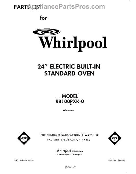 Parts for Whirlpool RB100PXK0: 01 - Section Parts