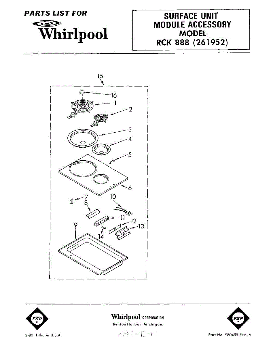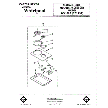 Complete stainless steel cook top cartridge. For individual elements order WP660533 or WP660532.