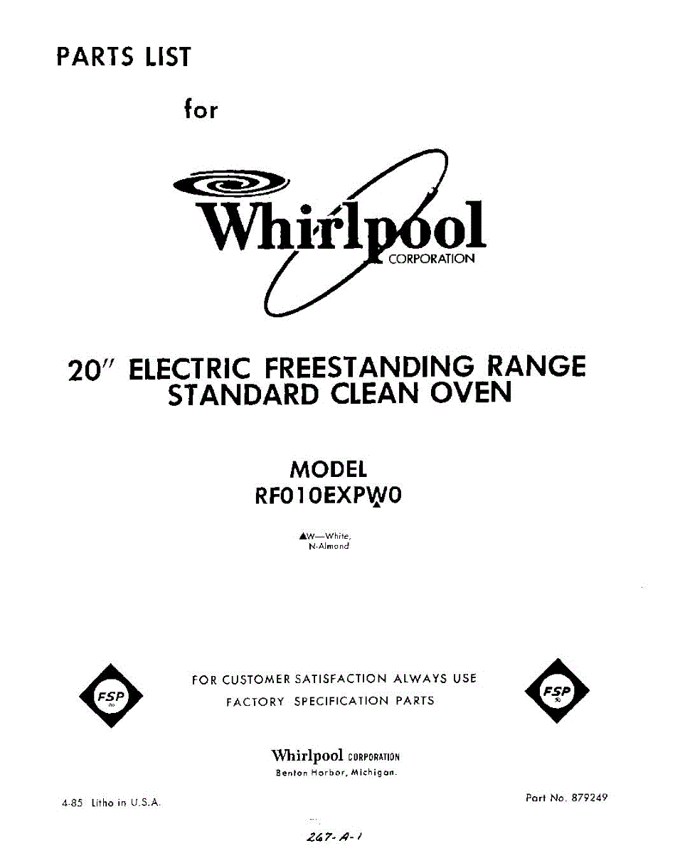 Parts for Whirlpool RF010EXPW0: 01 - Section Parts
